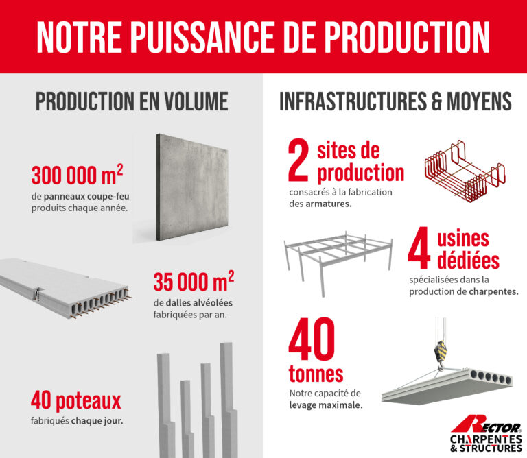 Rector Charpentes & Structures conçoit, produit et pose des systèmes constructifs préfabriqués en béton destinés aux secteurs de l’industrie et de la logistique depuis plus de 35 ans.